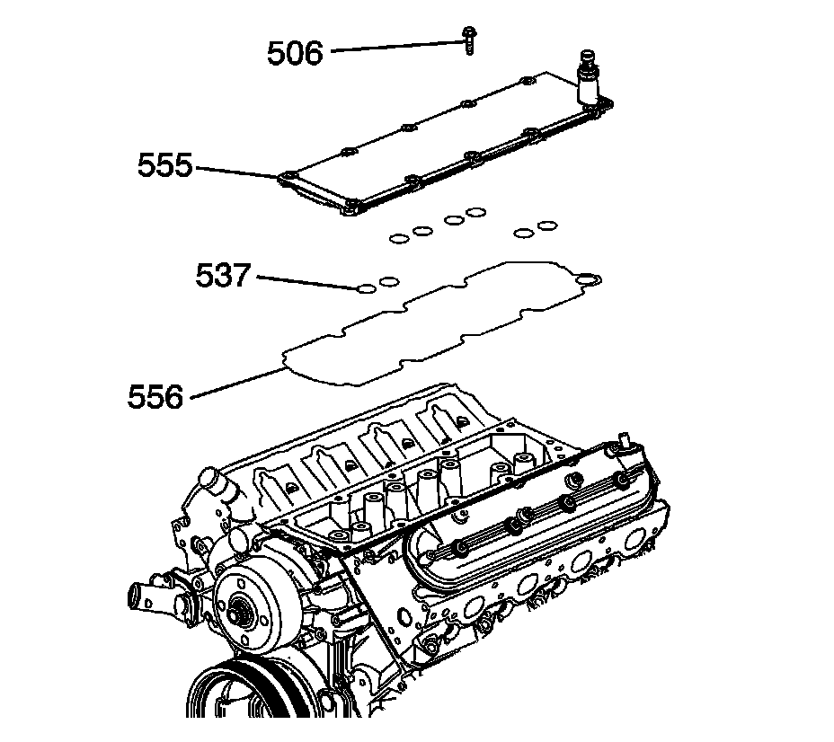 3. Install the cover (555), gasket (556), and bolts (506). Tighten the manifold bolts to 25 Nm (18 lb ft).
