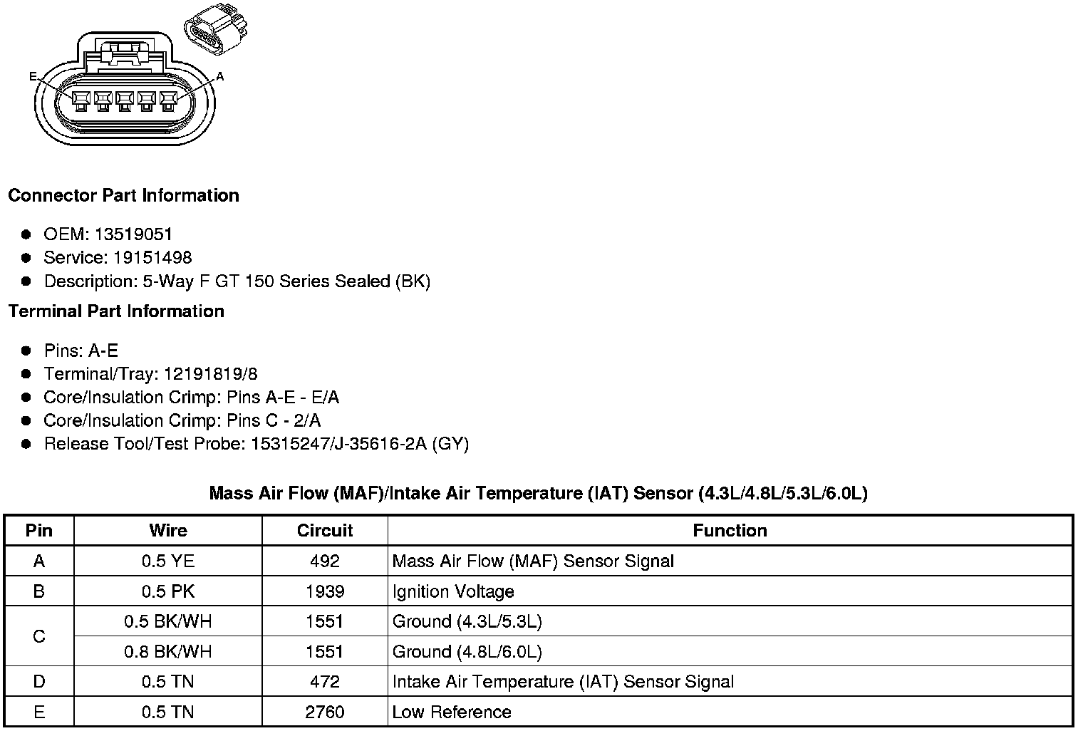Mass Air Flow (MAF)/Intake Air Temperature (IAT) Sensor (4.3L/4.8L/5.3L/6.0L)