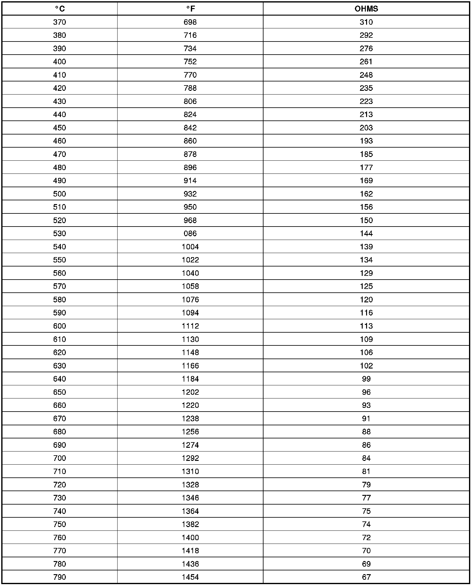 Temperature Versus Resistance (EGR Temperature Sensors)
