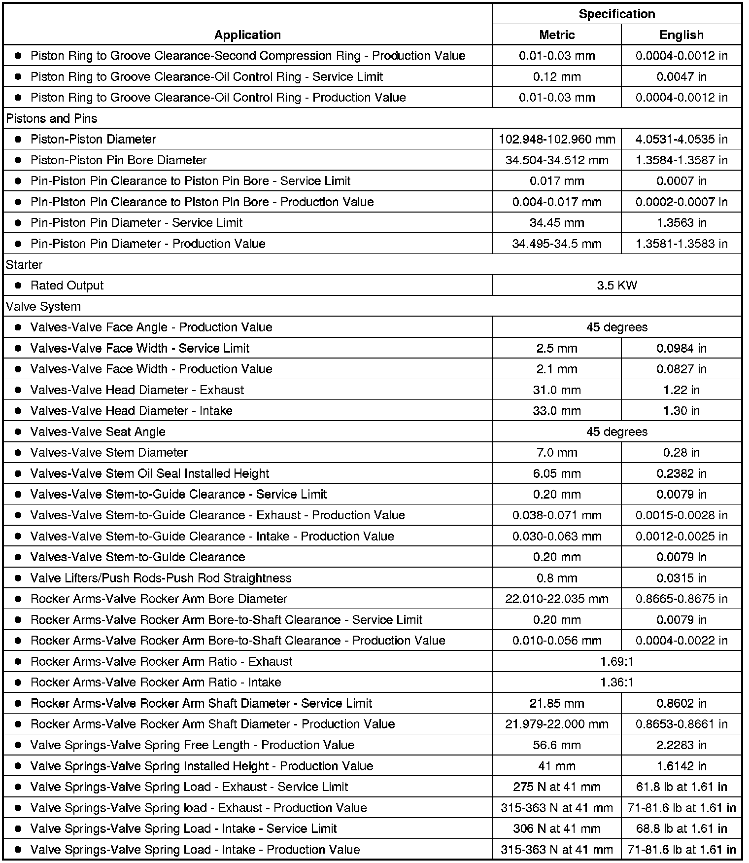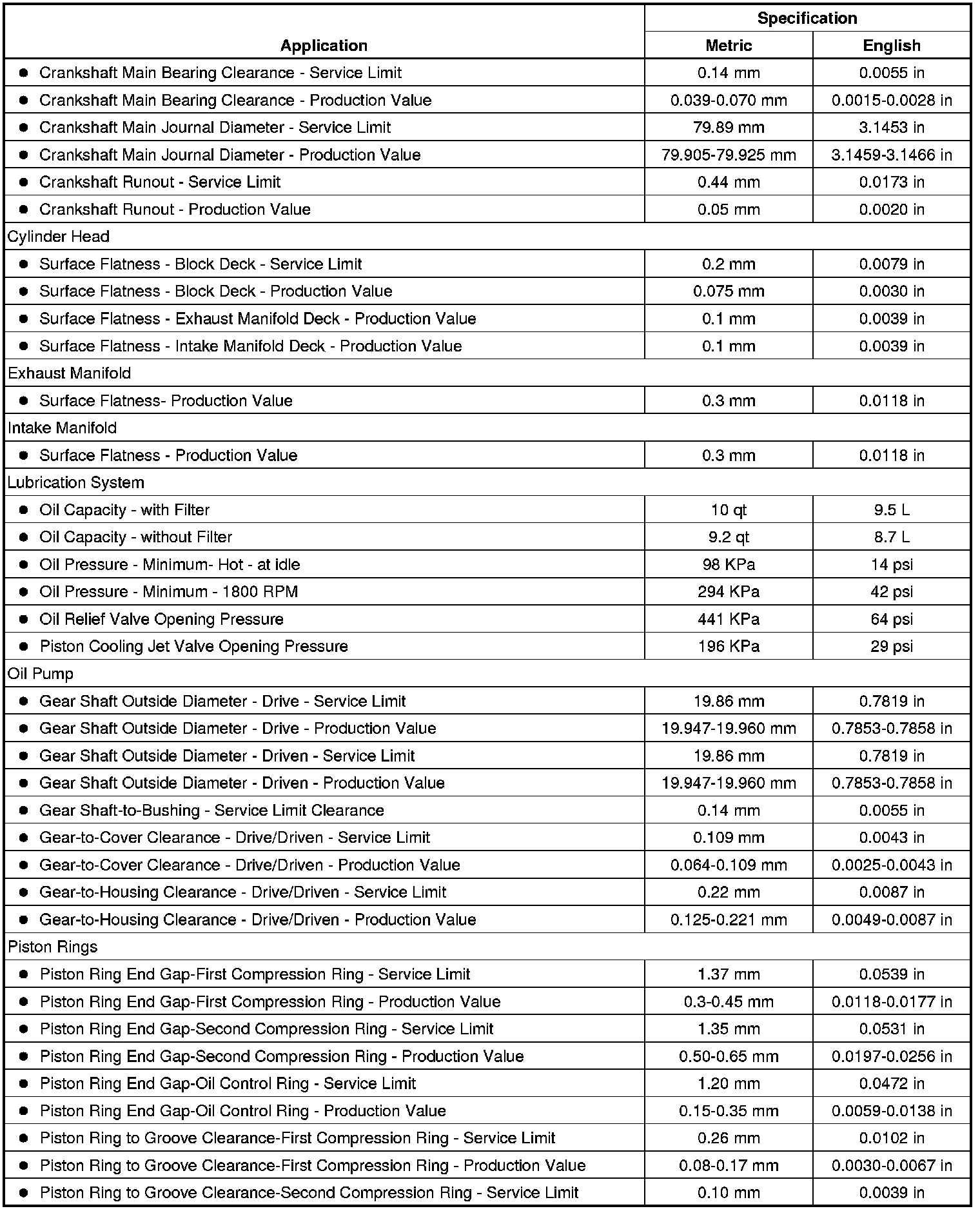 Engine Mechanical Specifications