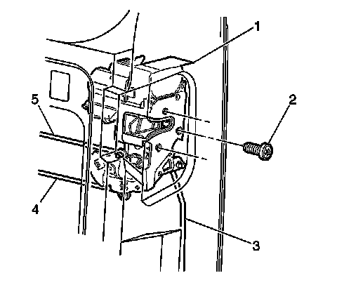 4. Remove the screws (2) that retain the lock (1) to the right side rear door.