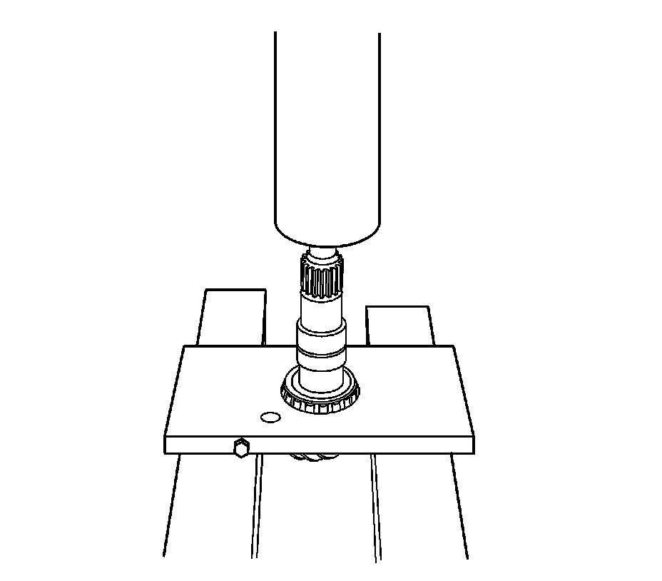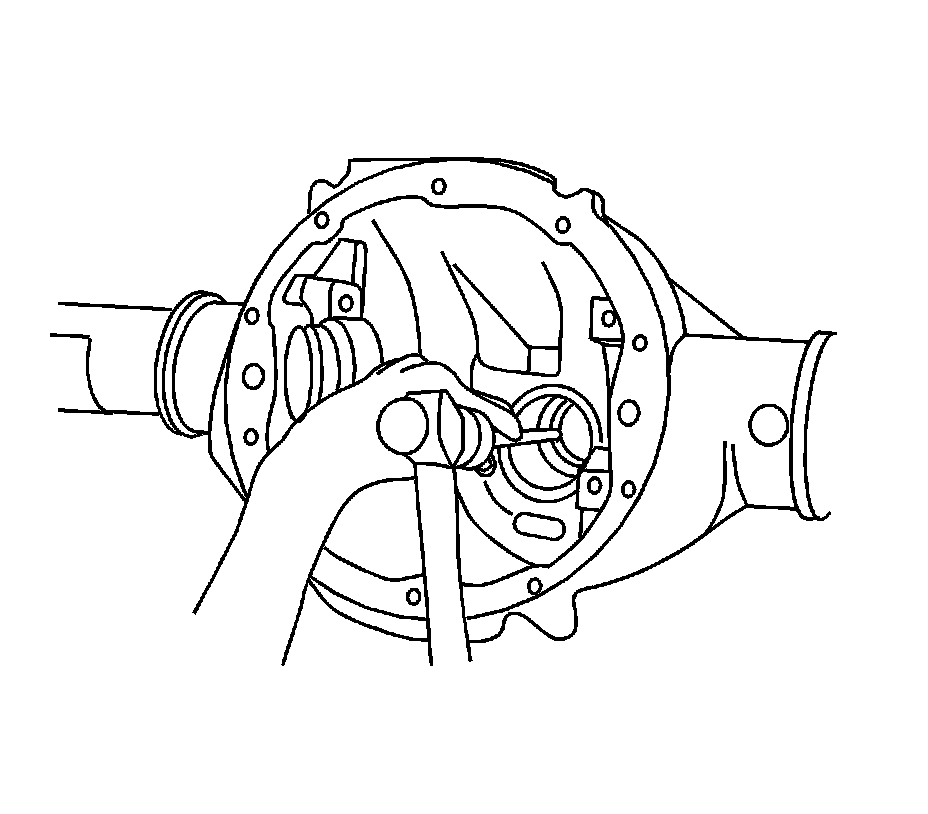 3. Remove the drive pinion from the axle. Refer to Drive Pinion and Ring Gear Replacement (8.6 Inch Axle) (Service and Repair)Drive Pinion and Ring Gear Replacement (9.75, 10.5 and 10.75 Inch Axles) (Drive Pinion and Ring Gear Replacement (9.75, 10.5 and 10.75 Inch Axles)).