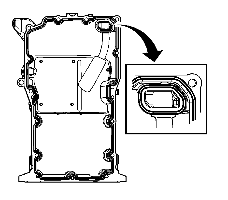 2. Apply a 3.5 mm bead of sealant around the perimeter of the oil pan and the oil suction port opening. DO NOT over apply the sealant. Refer to Adhesives, Fluids, Lubricants, and Sealers (Specifications) for the correct part number.