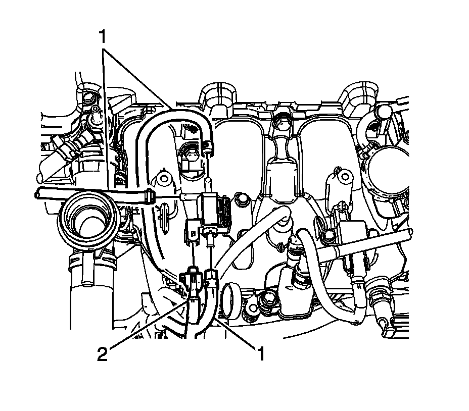 6. Disconnect the charge air valve solenoid vacuum lines (1).