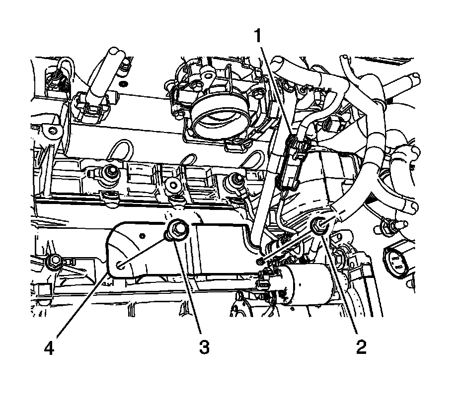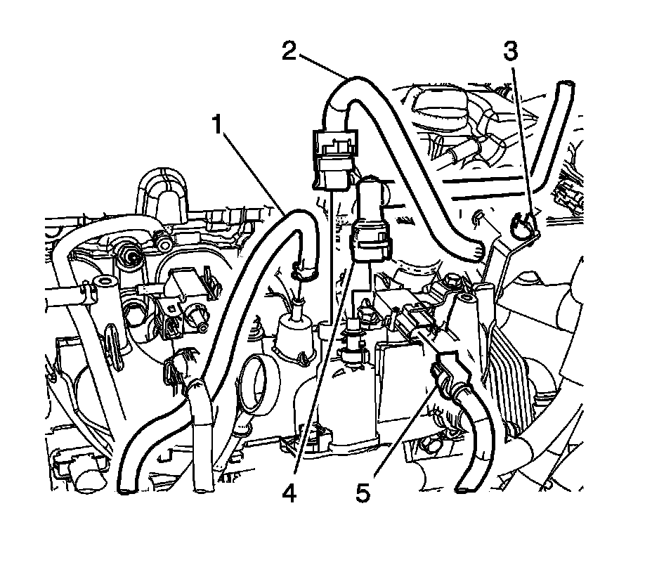 11. Disconnect the evaporative emission (EVAP) line quick connect fitting (4) from the EVAP purge solenoid. Refer to Plastic Collar Quick Connect Fitting Service (Plastic Collar Quick Connect Fitting Service).