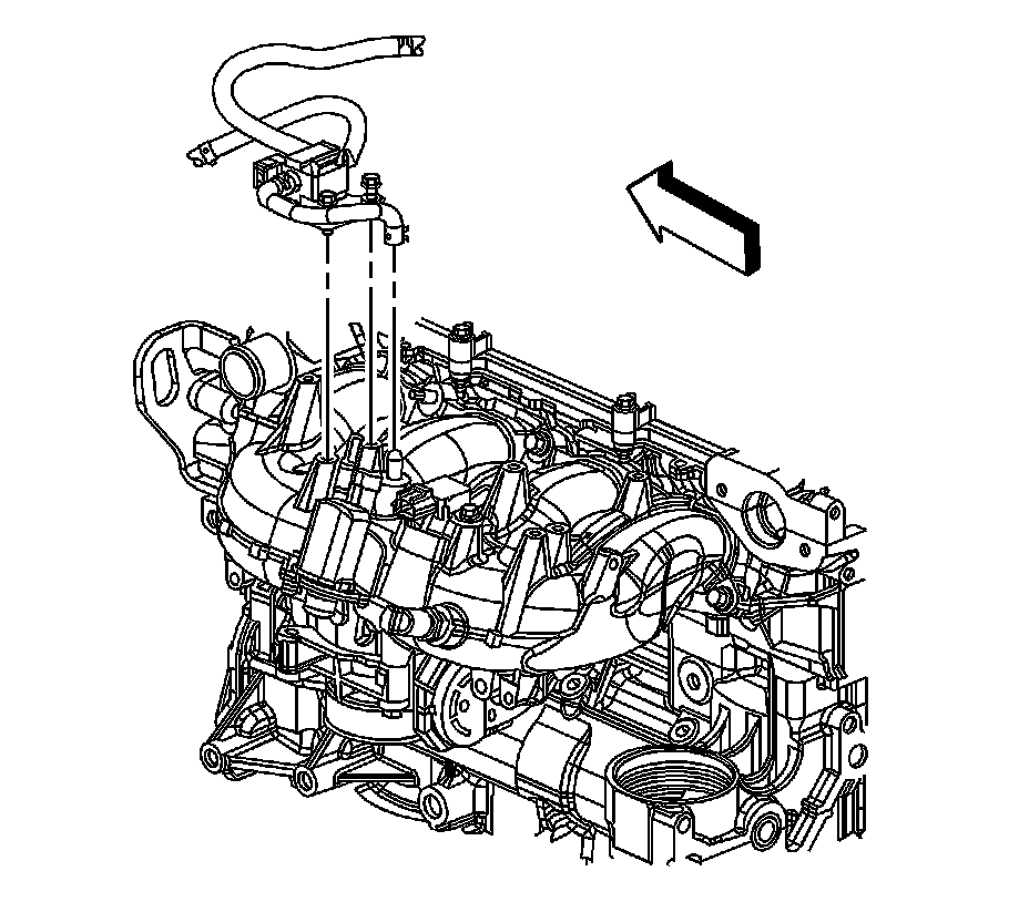 25. Remove the charge air bypass vacuum tank. Refer to Charge Air Bypass Valve Vacuum Tank Replacement (Charge Air Bypass Valve Vacuum Tank Replacement).