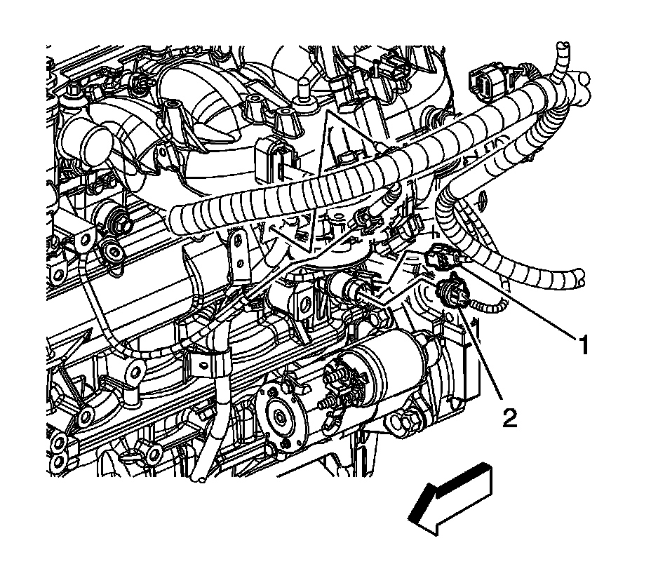 2. Disconnect the engine wiring harness electrical connector (1) from the crankshaft position (CKP) sensor.