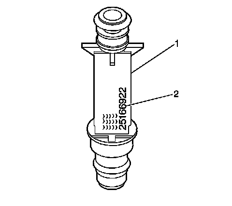 1. The fuel injector assembly (1) is stamped with a par number identification (2).