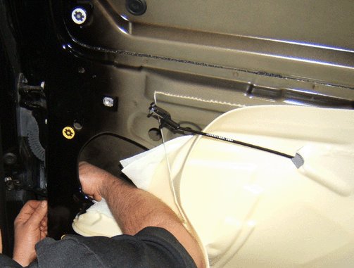 10. Reinstall the check link through the inside of the door, and position the check link to the inner door frame.