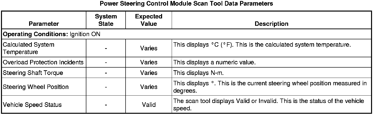 Power Steering Control Module Scan Tool Information