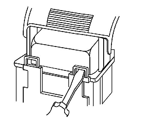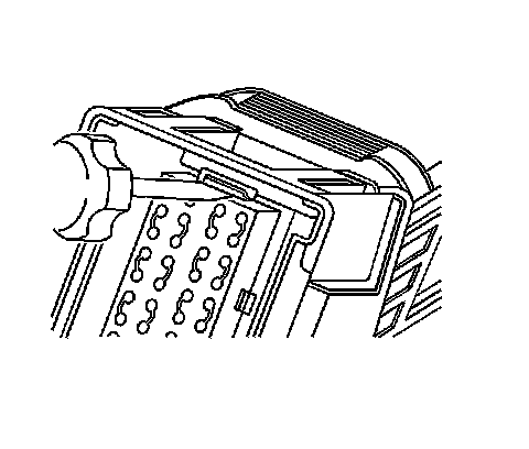3. Locate the dress cover locking tabs at the front of the connector. Using a small flat-blade tool push down on one of the locking tabs and pull the cover up until the dress cover releases. Repeat this procedure for the other locking tab.