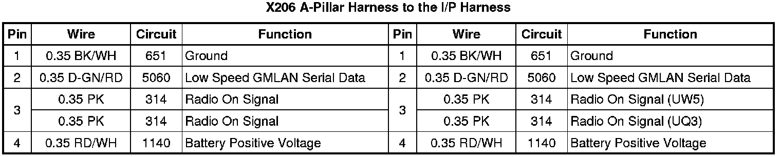 X206 A-Pillar Harness to the I/P Harness
