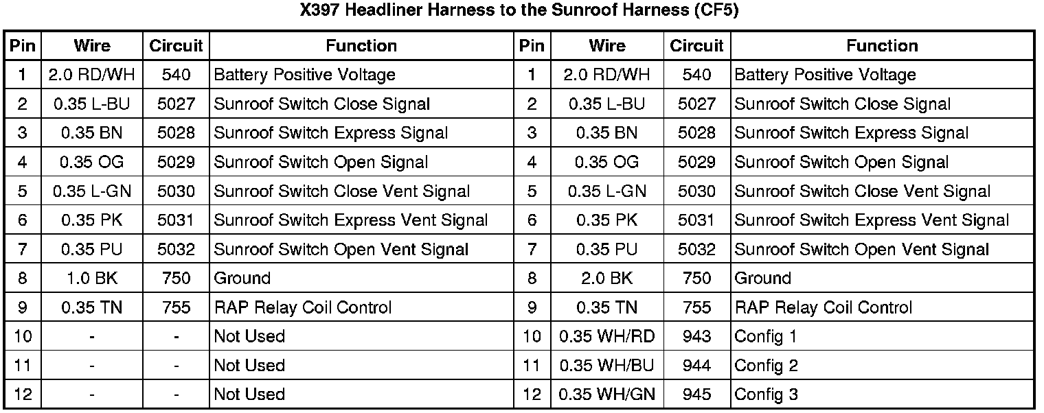 X397 Headliner Harness to the Sunroof Harness (CF5)