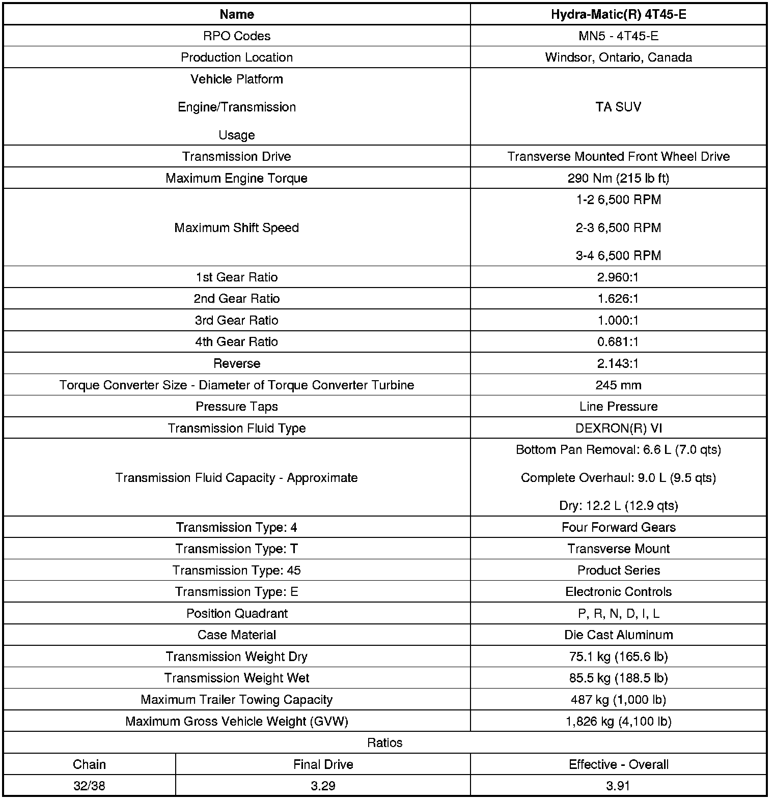 Transmission General Specifications