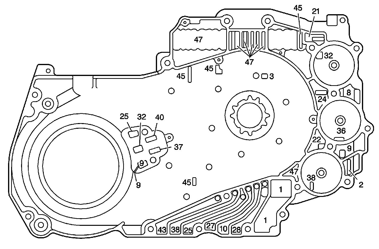 Case and Driven Sprocket Support Fluid Passages - Channel Plate Side