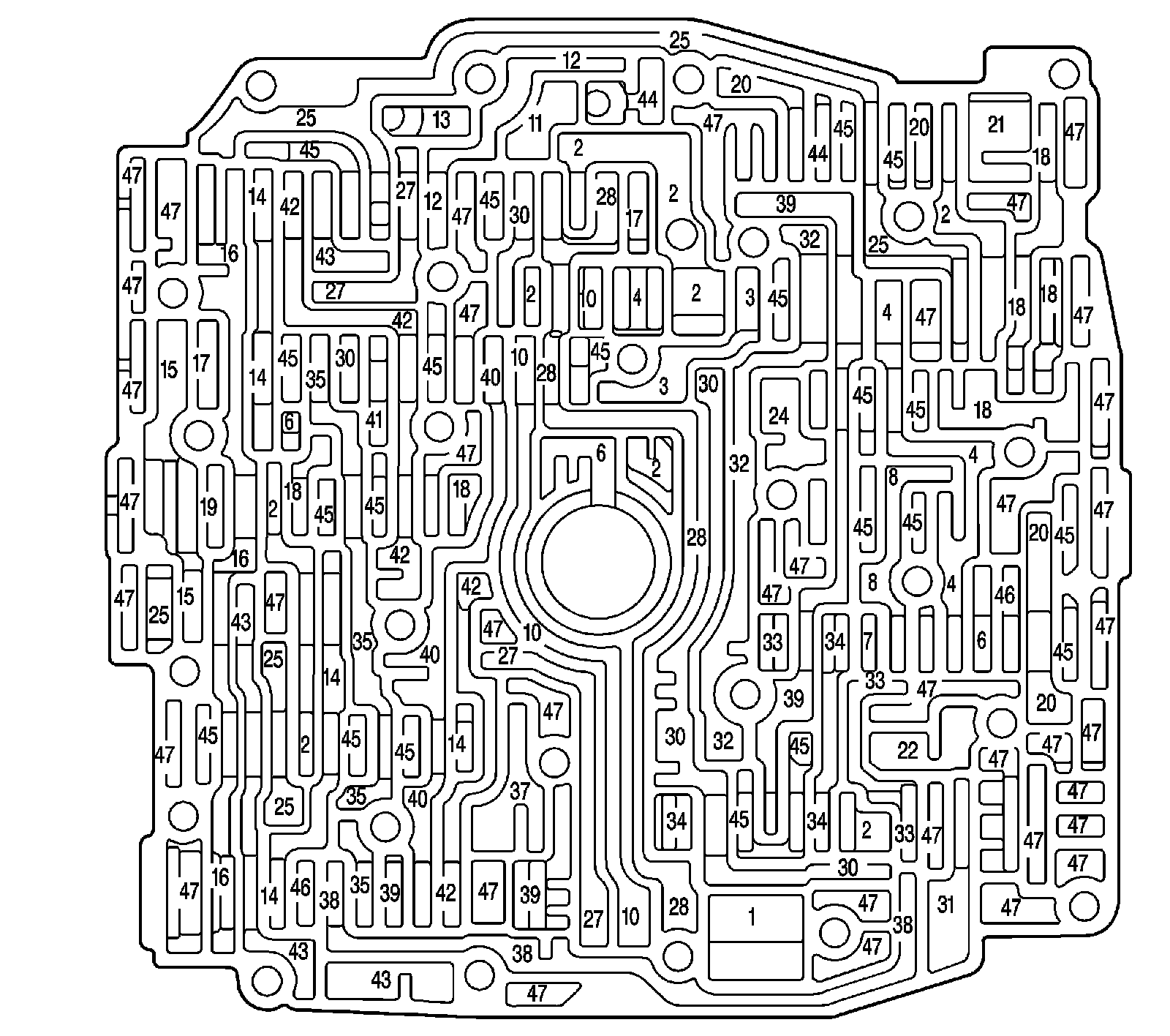 Control Valve Body Fluid Passages (Channel Plate Side)