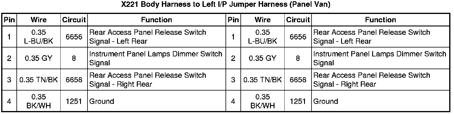 X221 Body Harness to Left I/P Jumper Harness (Panel Van)
