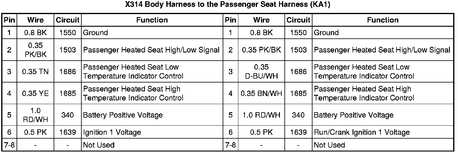 X314 Body Harness to the Passenger Seat Harness (KA1)