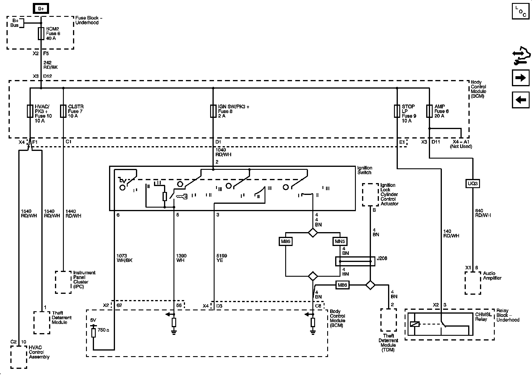 Body Control Module - BCM2, HVAC/PK3, CLUSTER, IGN SW, STOP LPS, and AMP Fuses