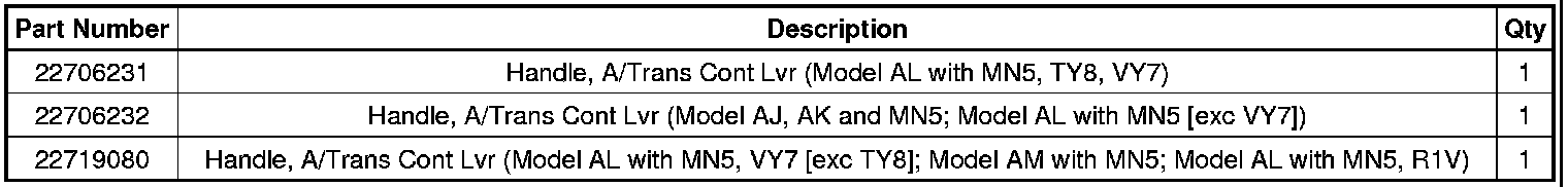 A change has been made to the shifter assembly for service. The replacement shifter assembly will read PRNDIL (Park, Reverse, Neutral, Drive, Intermediate and Low).