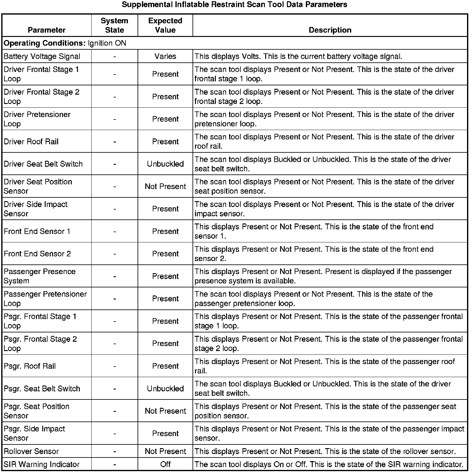 Inflatable Restraint Sensing and Diagnostic Module Scan Tool Information
