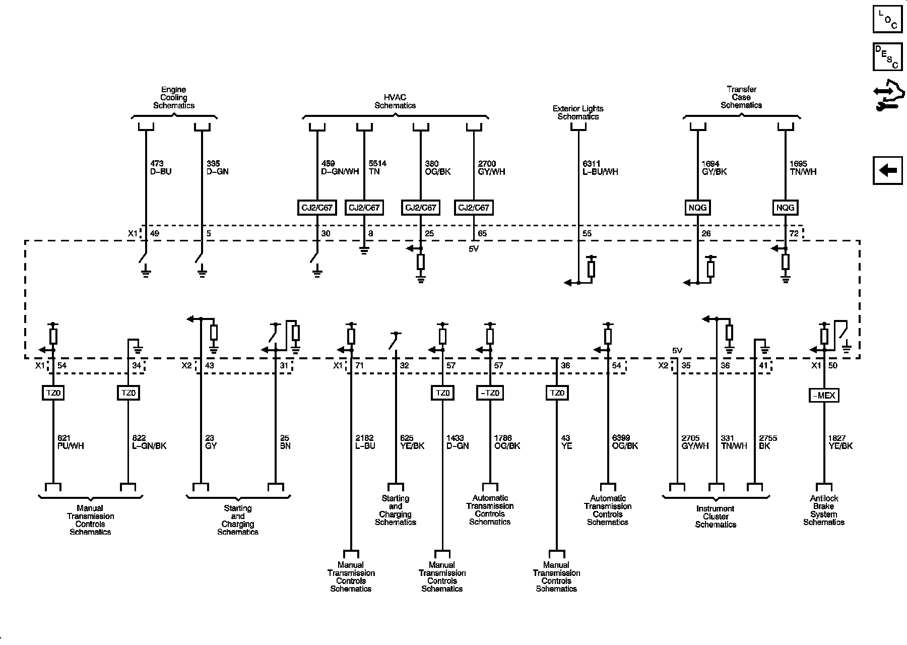 Locations: The locations for the Connectors, Grounds, Splices, and Grommets shown within these diagrams can be found via their numbers at Vehicle Locations. Locations
