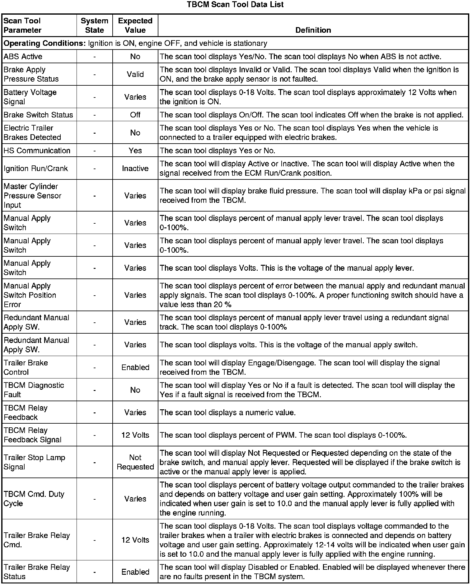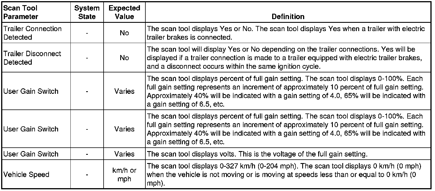 Trailer Brake Control Module Scan Tool Information