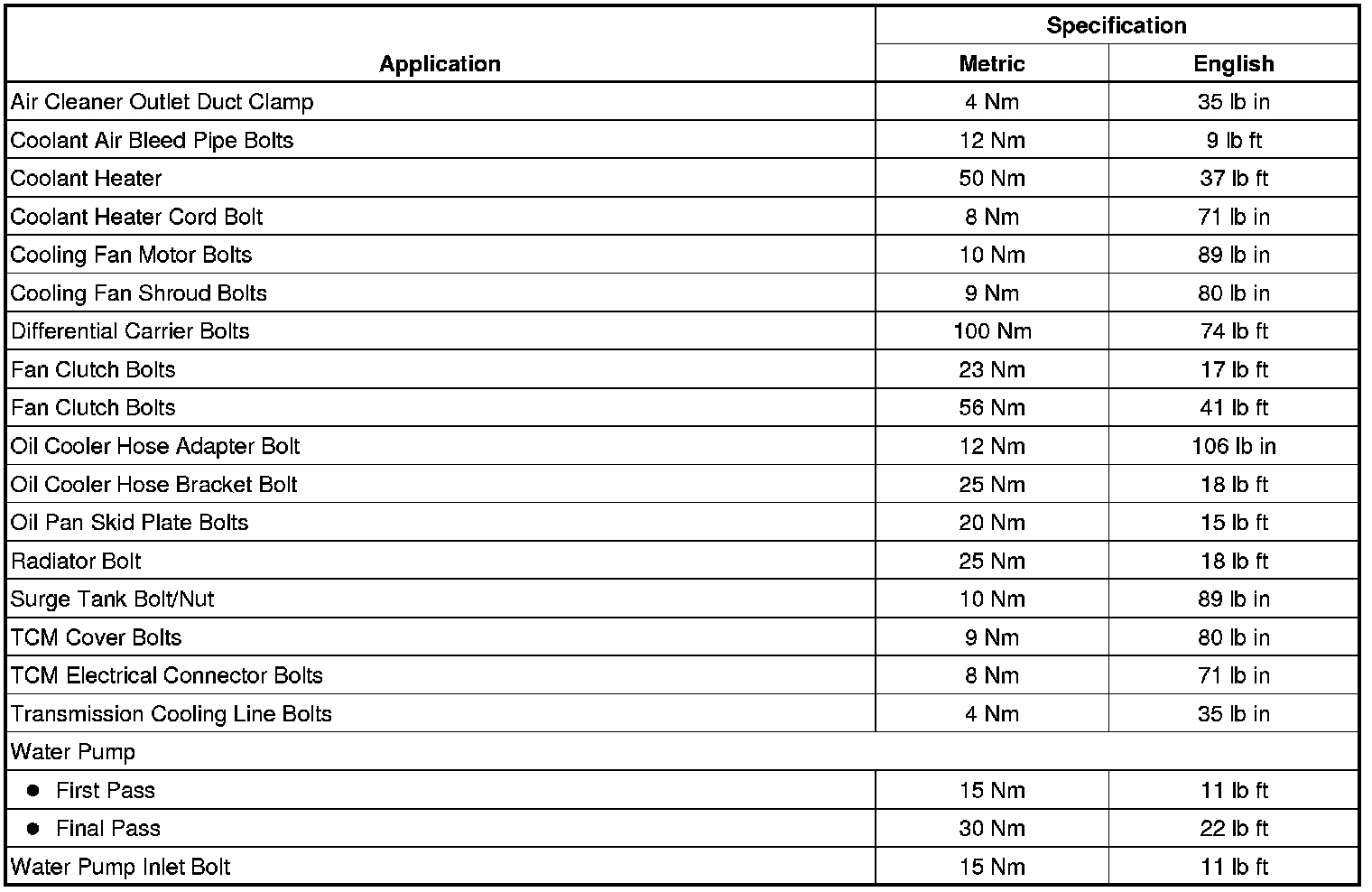 Fastener Tightening Specifications