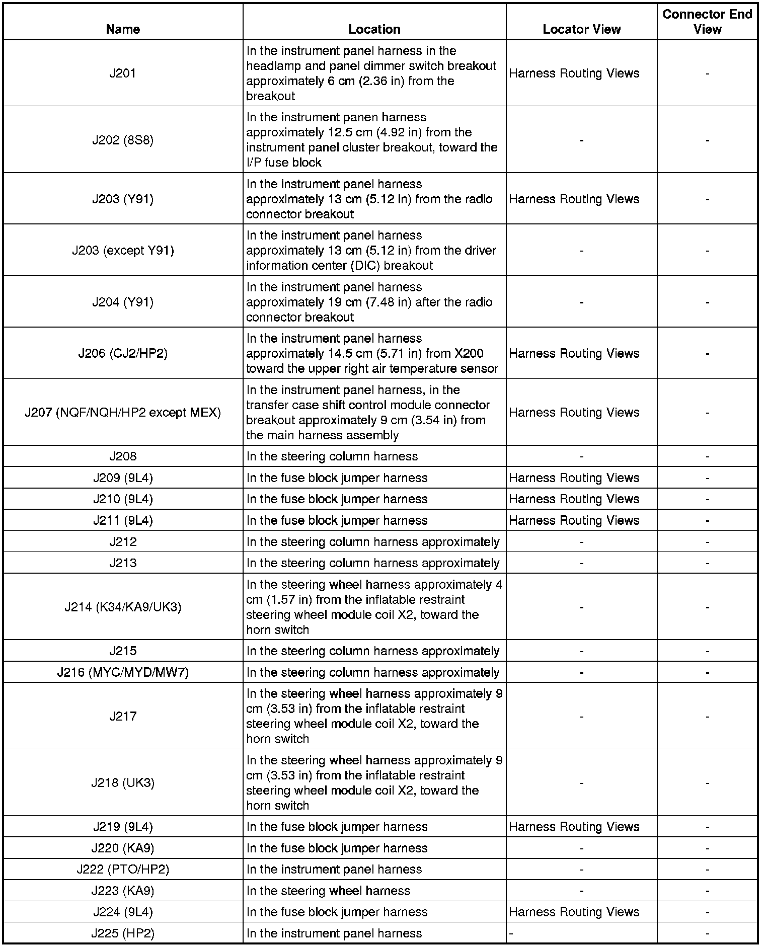 J201 - J225:
