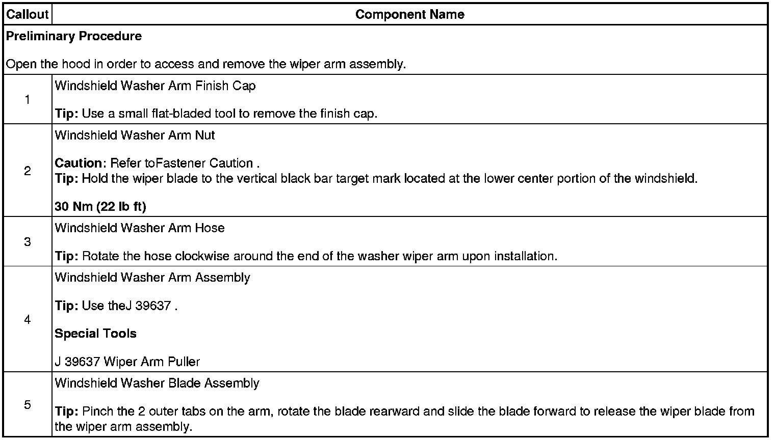 Wiper Arm: Service and Repair