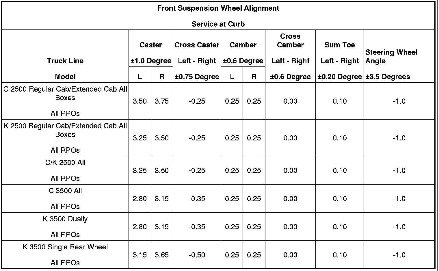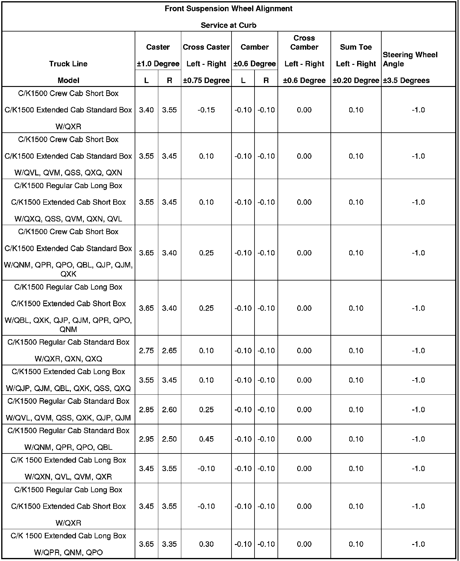 Wheel Alignment Specifications