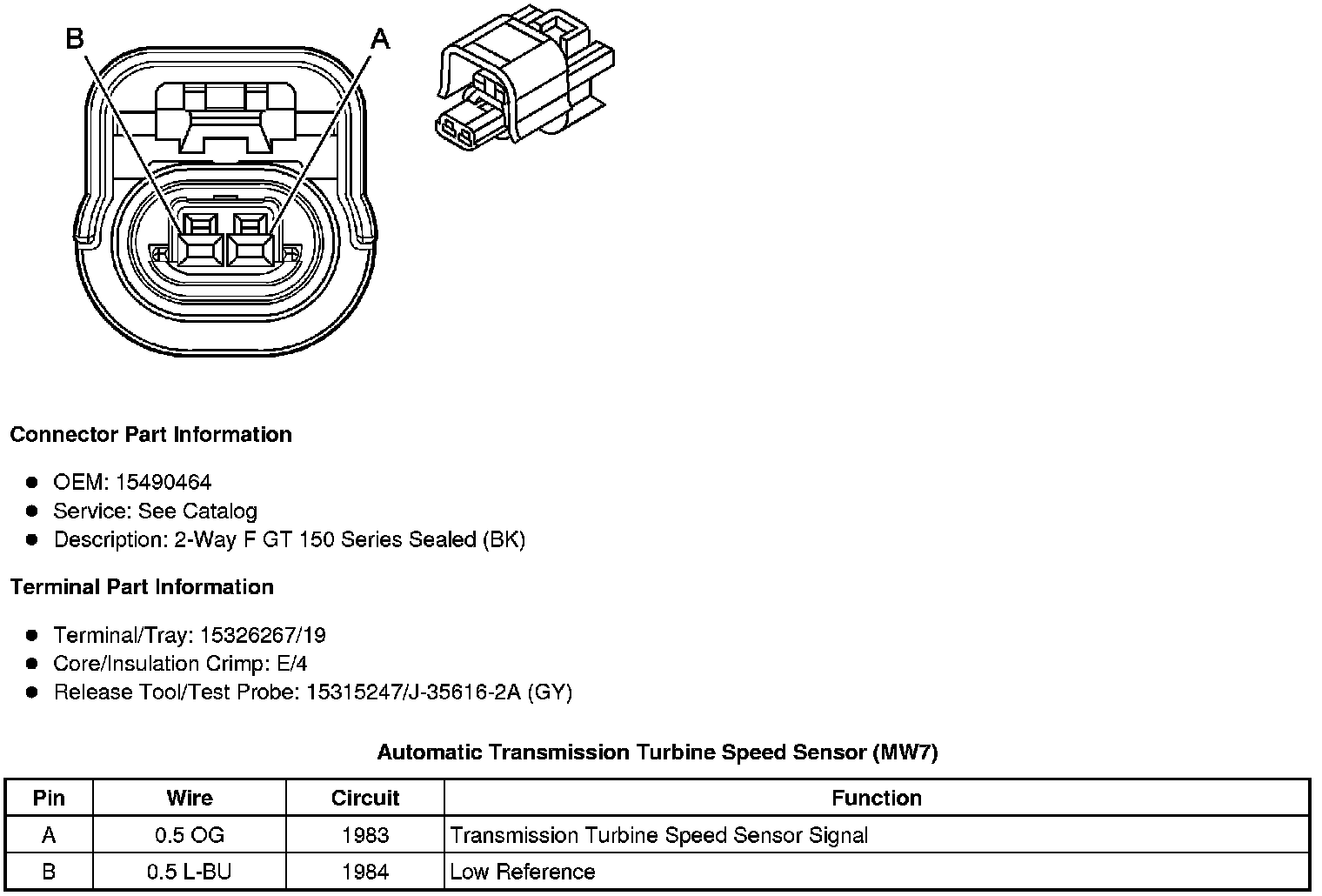 Automatic Transmission Turbine Speed Sensor (MW7)