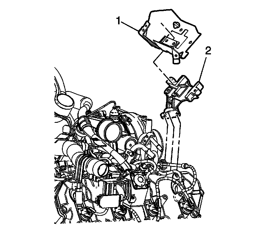 7. Remove the glow plug control module bracket and bolts (2), if required.