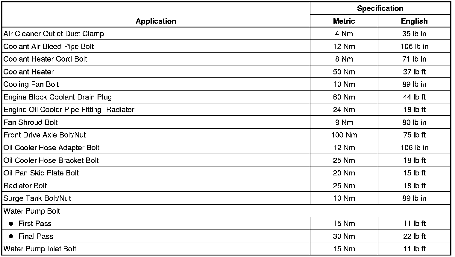 Fastener Tightening Specifications
