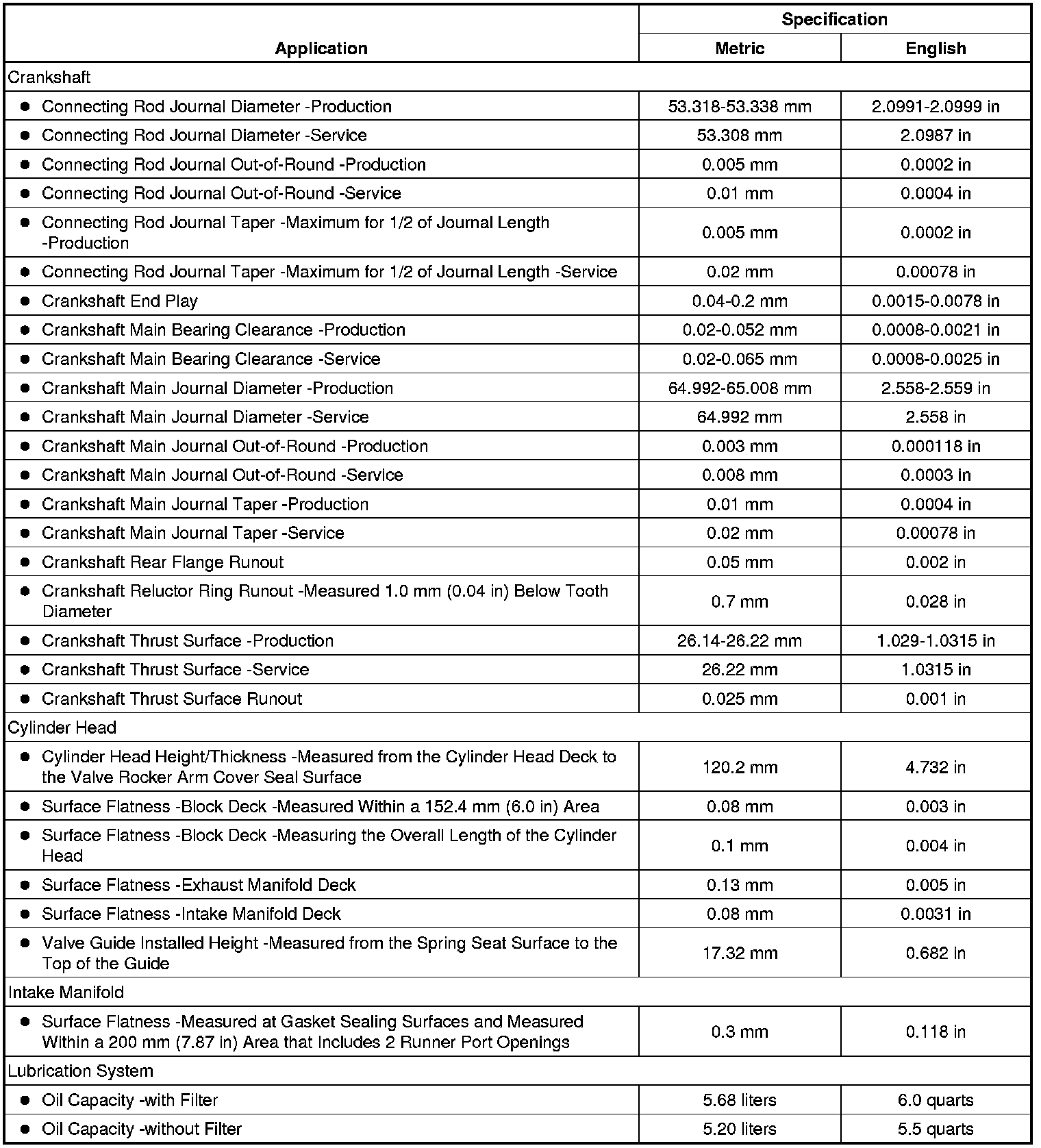 Engine Mechanical Specifications (RPO LY6 VIN K)