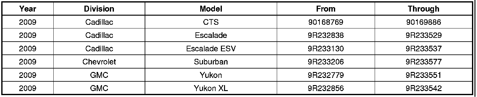 Dealers are to confirm vehicle eligibility prior to beginning repairs by using the GM Vehicle Inquiry System (GMVIS). Not all vehicles within the above breakpoints may be involved.