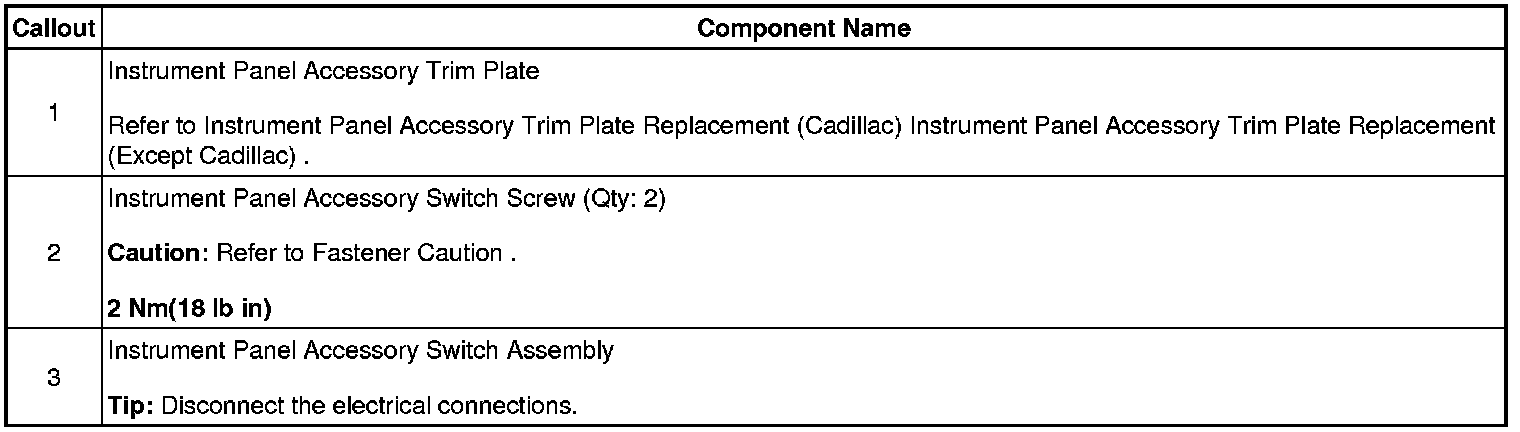 Accessory Switch Replacement (Except Cadillac)