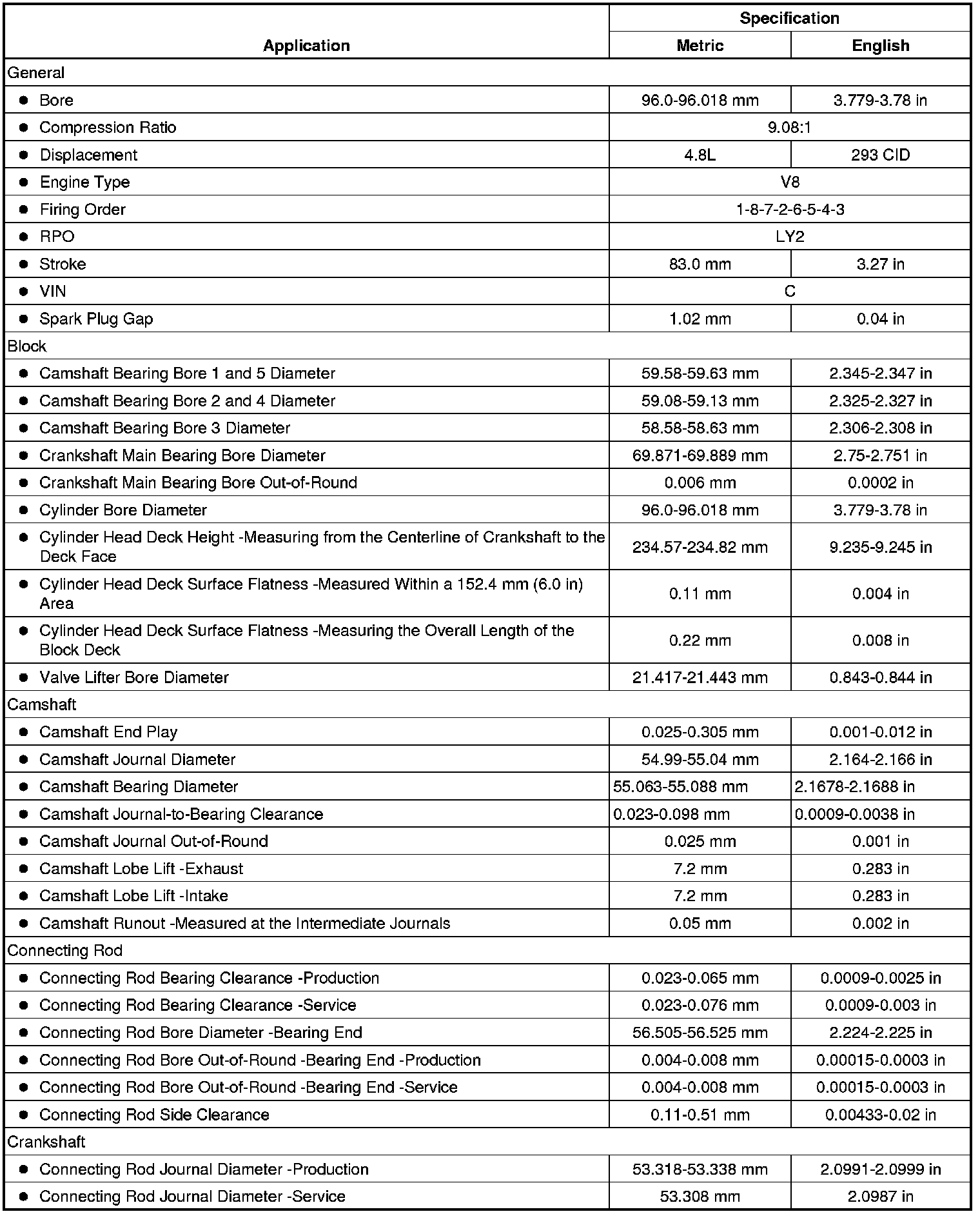 Engine Mechanical Specifications (RPO LY2 VIN C)