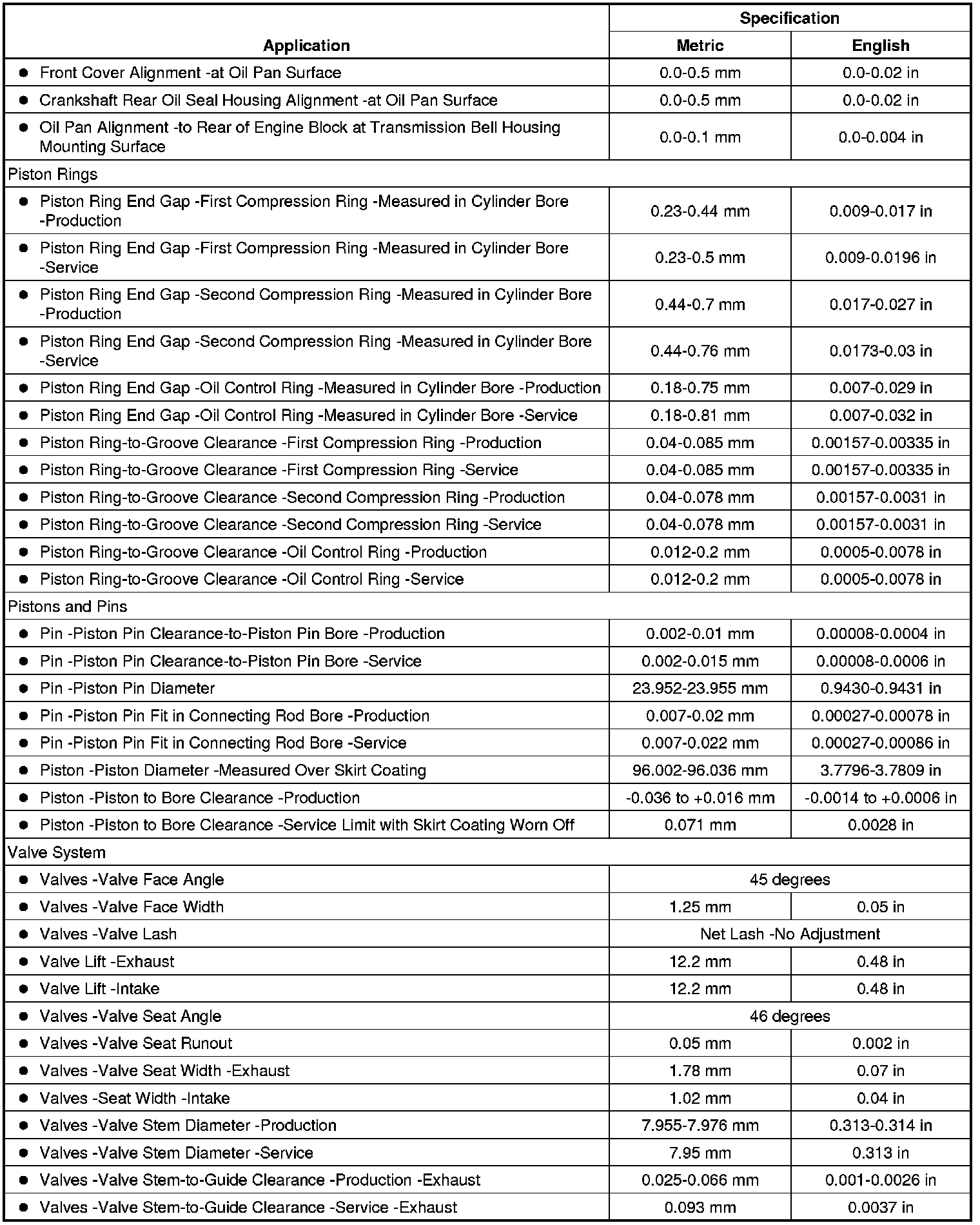Engine General Specifications & Service Limits