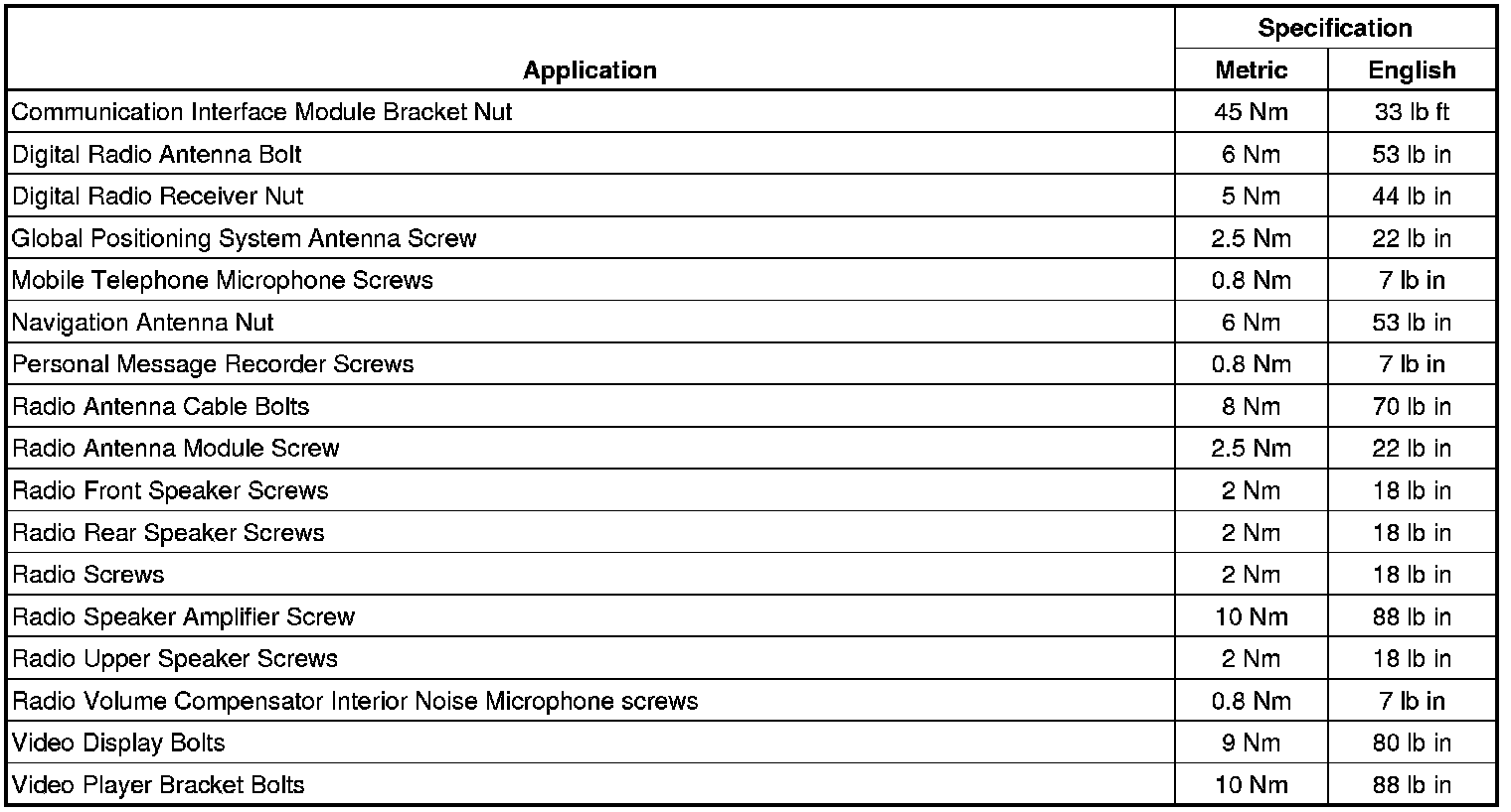 Fastener Tightening Specifications