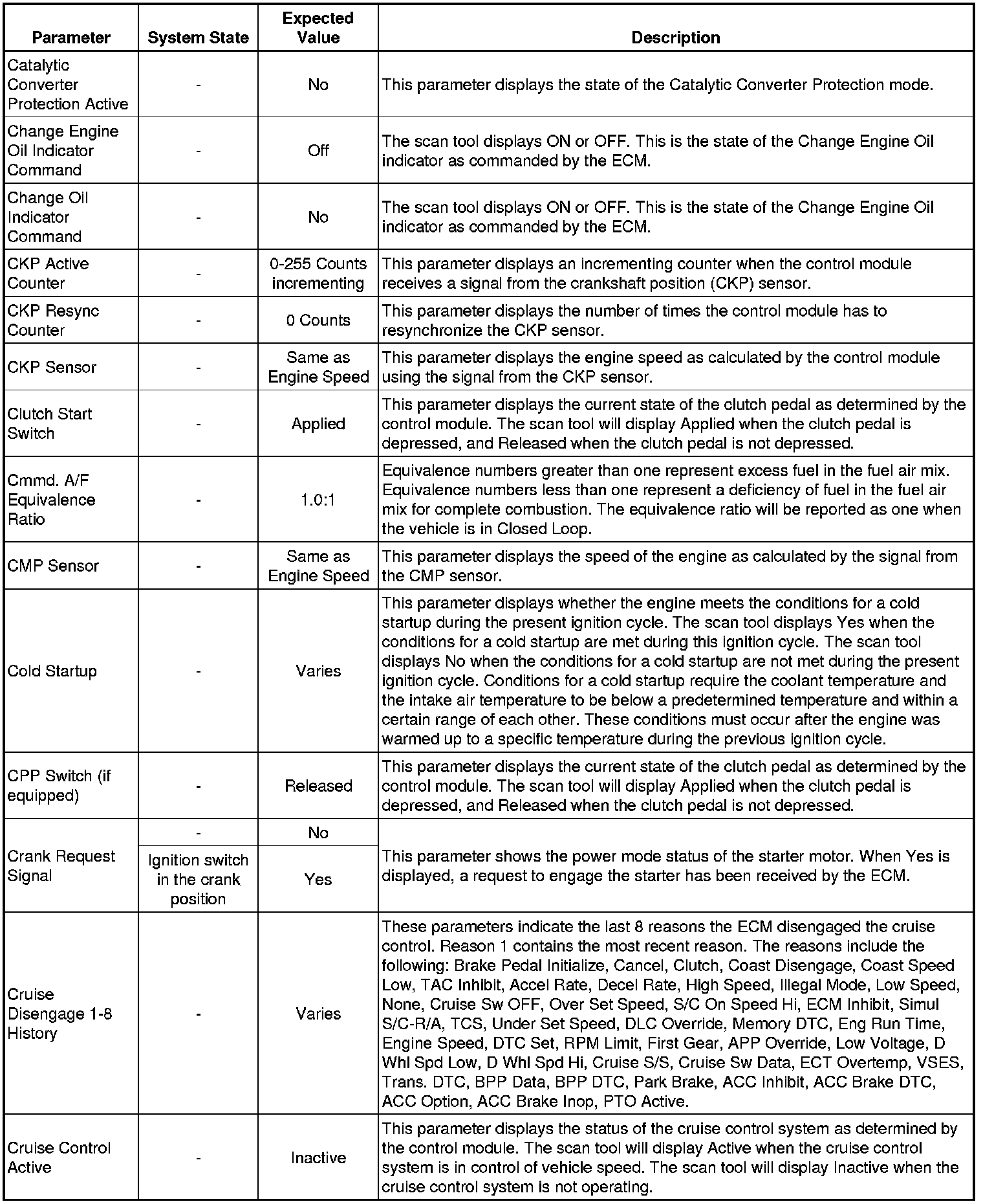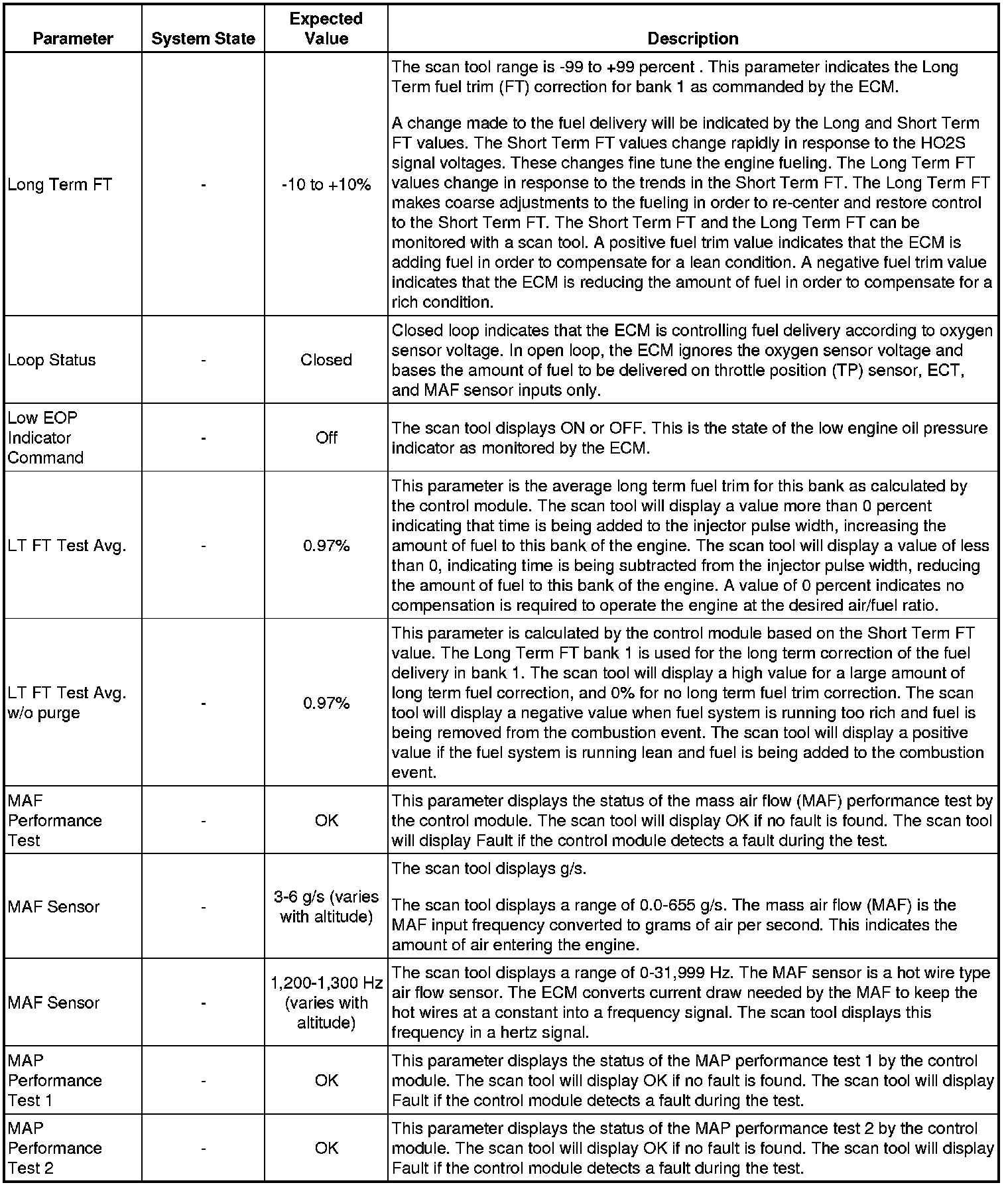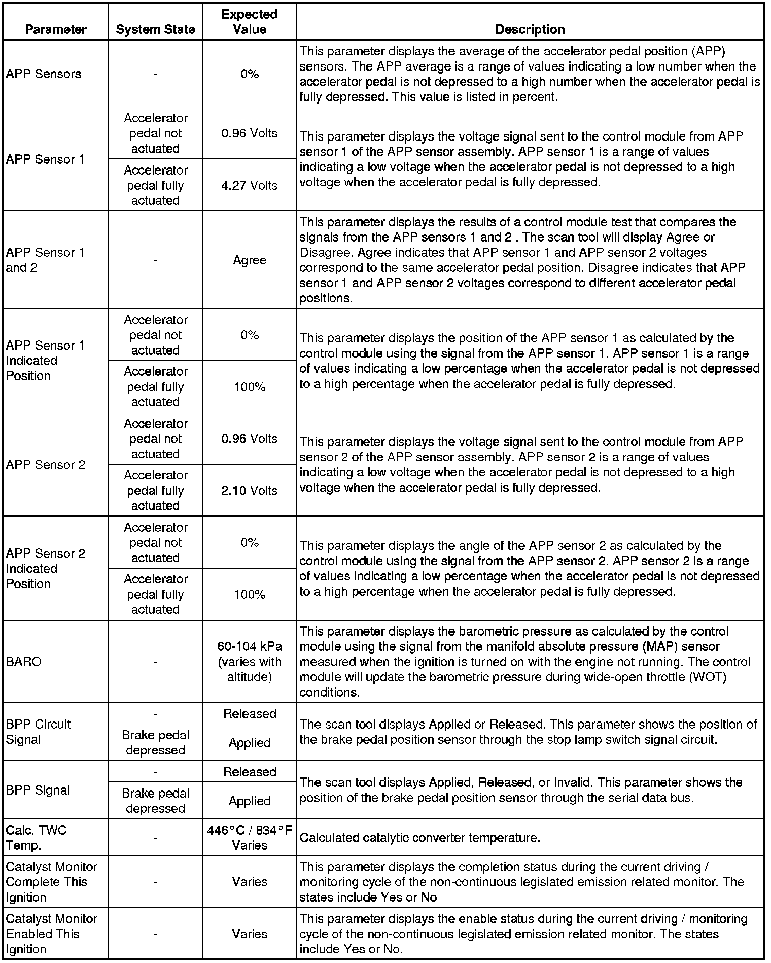 Only the parameters listed below are referenced in this service manual for use in diagnosis. If all values are within the typical range described below, refer to Symptoms - Engine Controls (- Symptoms - Engine Controls) for the 4.2L engine for diagnosis.