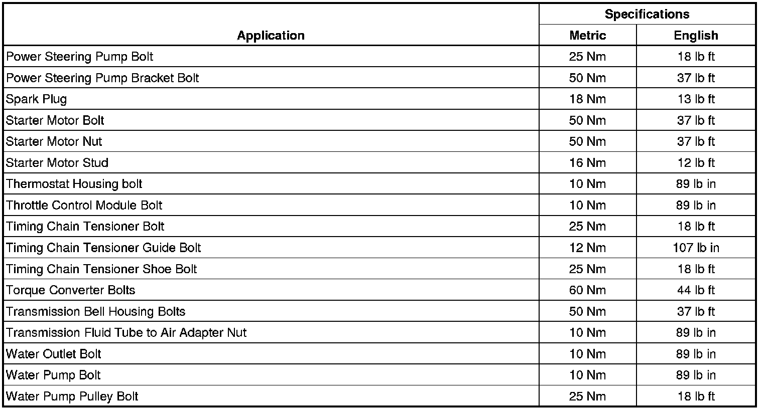 Fastener Tightening Specifications