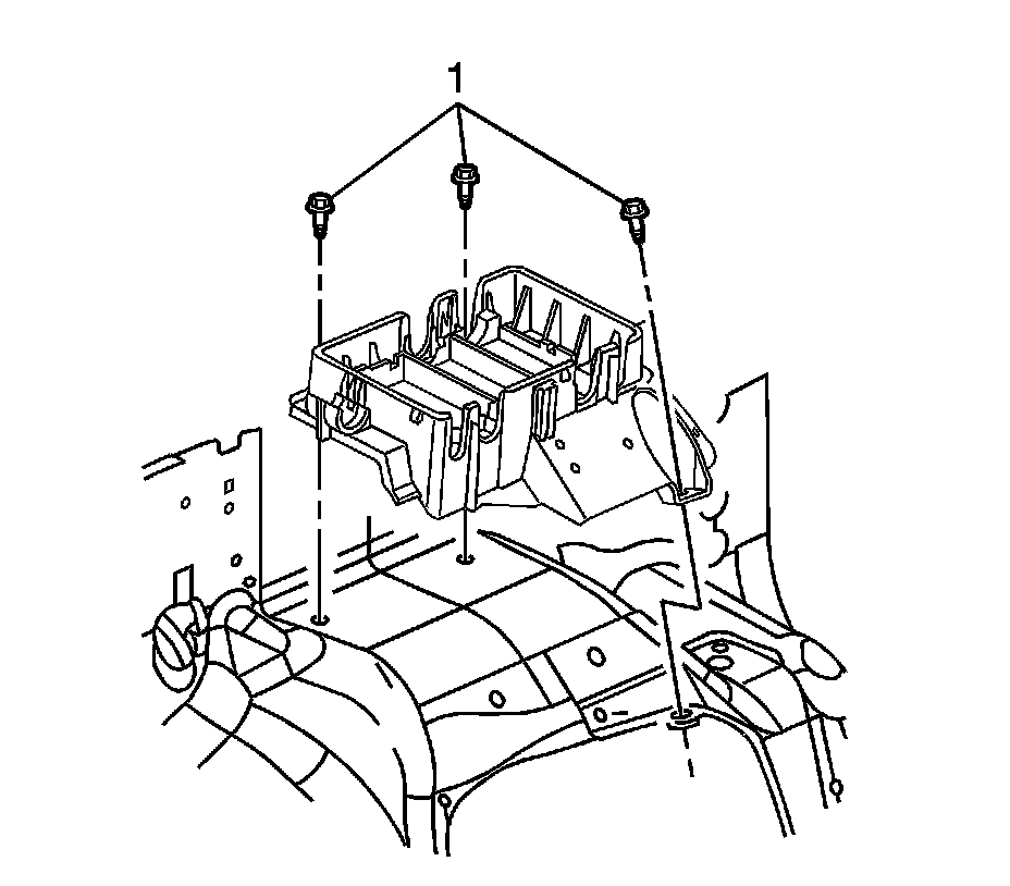 5. Install the fuse relay center cover (1) over the relay center bolts. Press downward to engage the tabs.