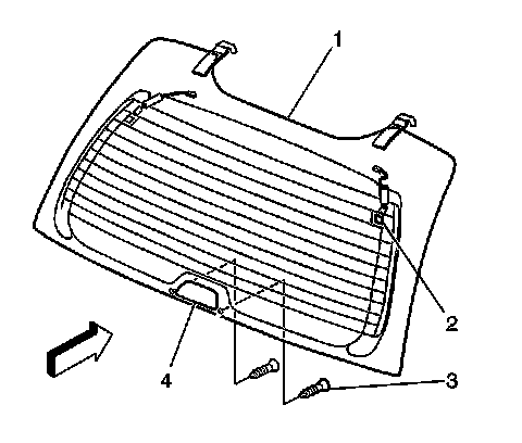 6. With the aid of an assistant remove the struts (3) from the liftgate window. Refer to Liftgate Strut Replacement (Service and Repair).