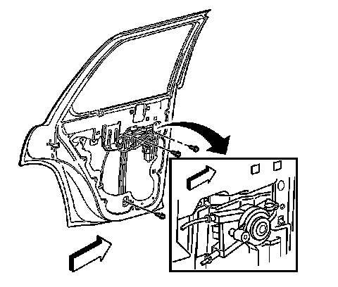 1. Remove the door trim panel. Refer to Rear Side Door Trim Panel Replacement (Service and Repair).