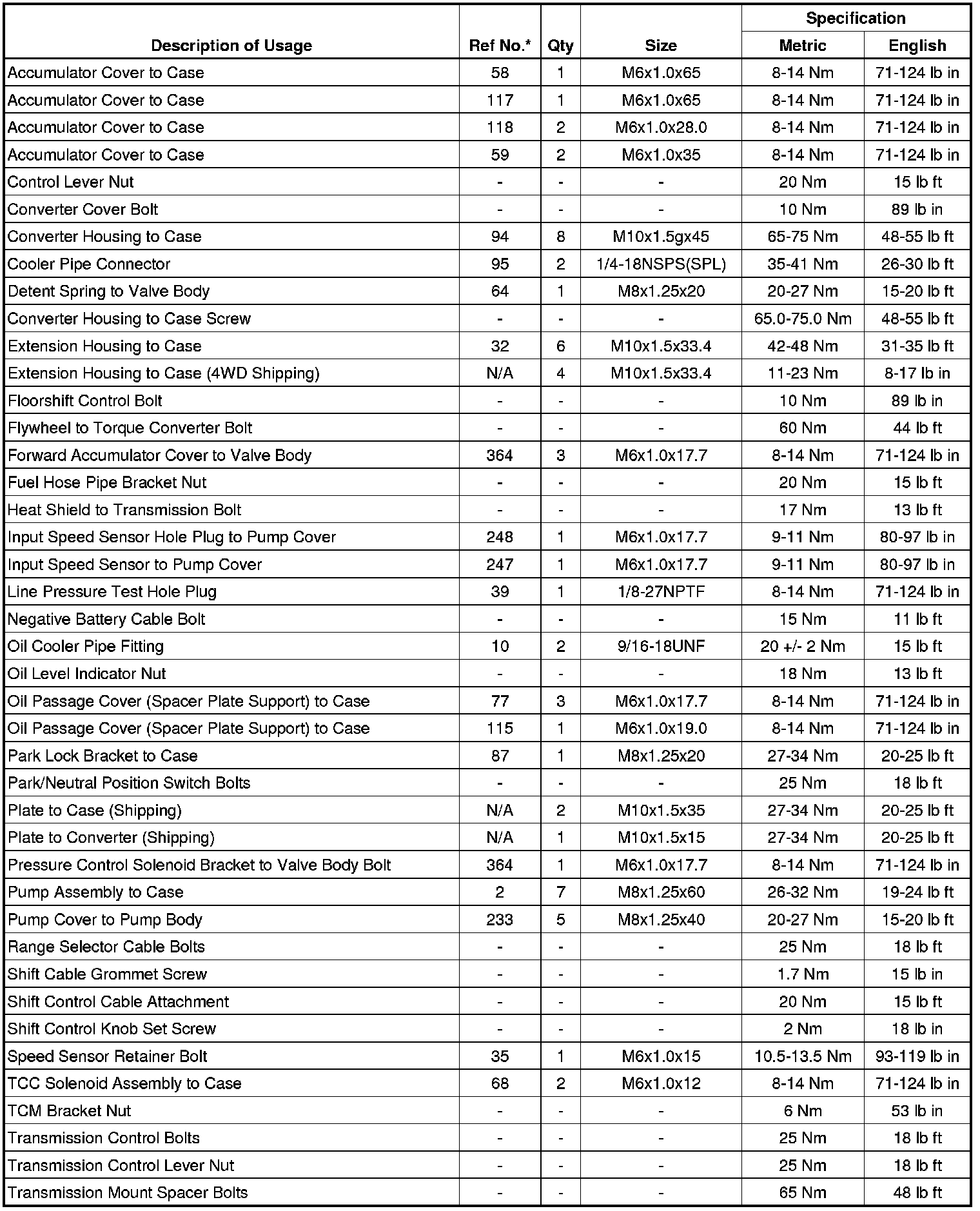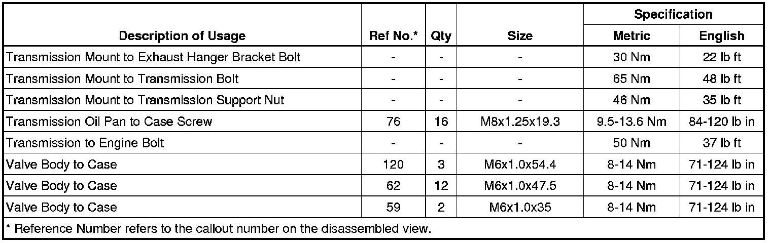 Fastener Tightening Specifications