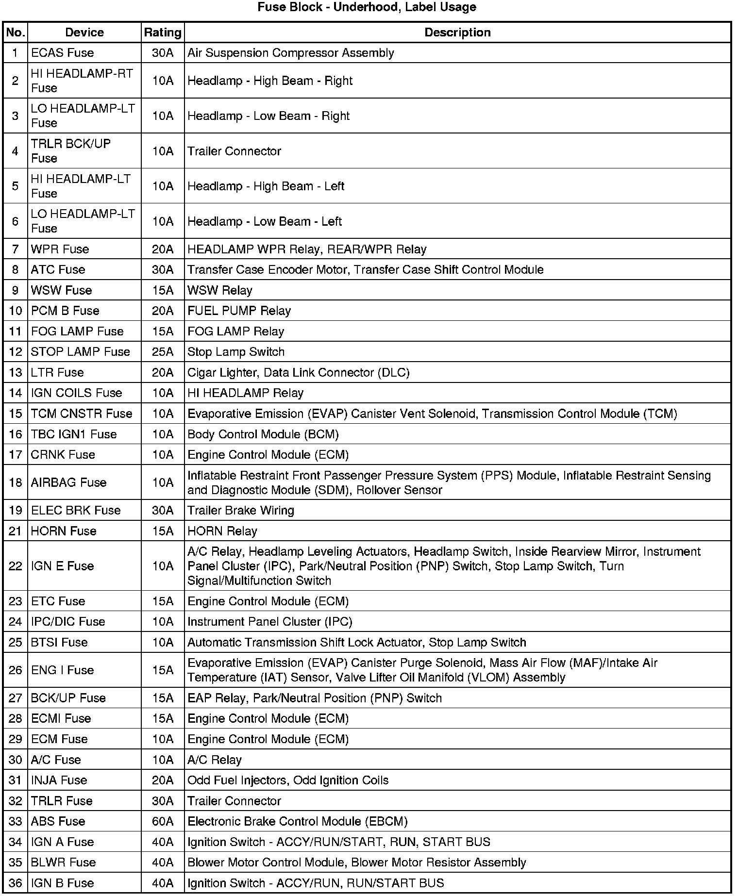 Fuse Block - Underhood, Label