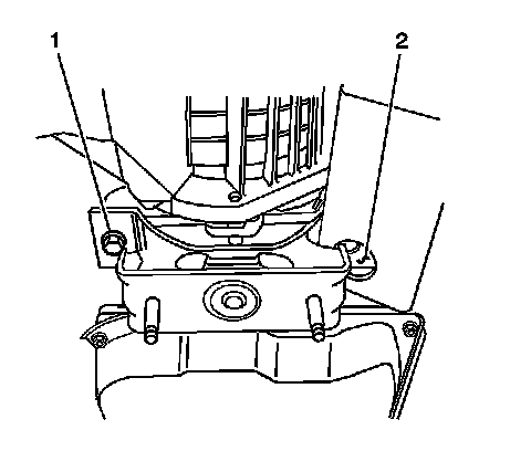 5. Remove the transmission mount bolts (1, 2).