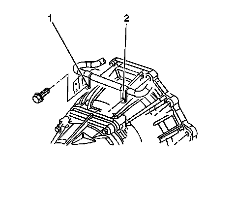 27. Remove the bolts (1, 2) that secure the coolant pipe to the bell housing.