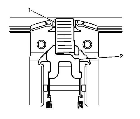 2. Install the small loop (1) onto the rear seat cushion latch (2).